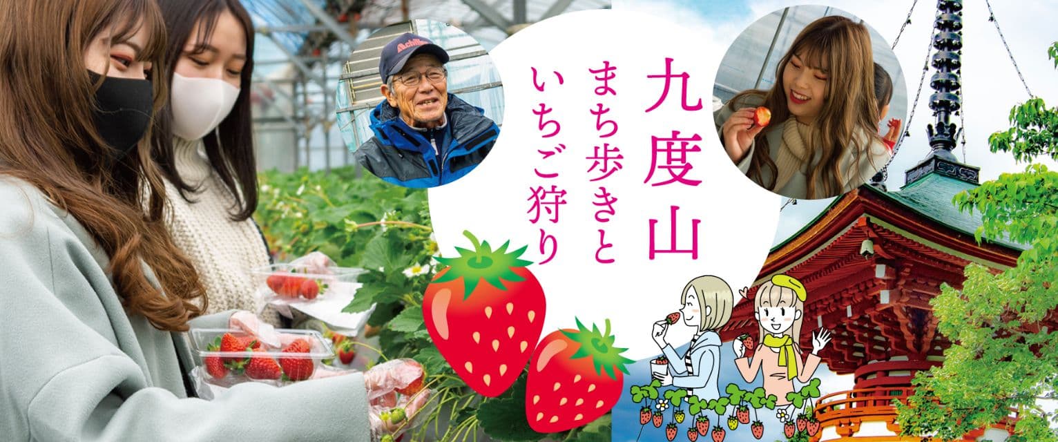 九度山町で栽培されているいちご園でたっぷりいちご狩りを楽しんでから、歴史あふれる九度山の街へご案内いたします。