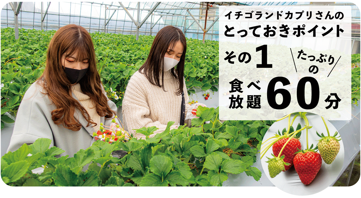イチゴランドカプリさんでは、1月から5月までいつでも美味しいイチゴを楽しめます。!!