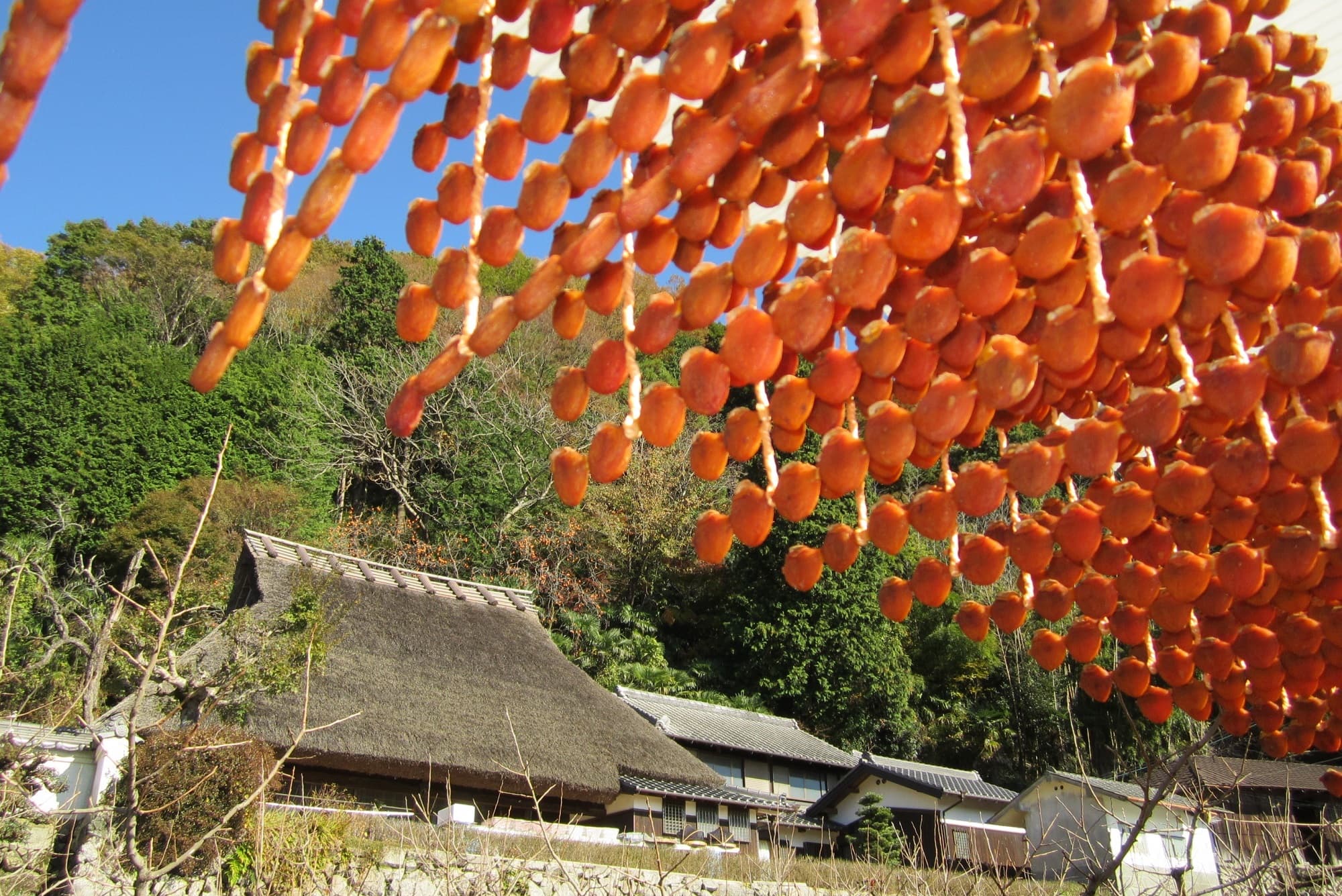 かつらぎ町を流れる紀ノ川の北側の山深いところに位置する四郷地区は漢字が表すとおり、四つの郷が集まった地域で、「広口」・「滝」・「東谷」・「平」を総称し「串柿の里」と呼ばれて、400年も前から『串柿』の特産地として長い歴史と伝統を育んできました。秋には多くの写真愛好家がその風景の撮影に訪れます。