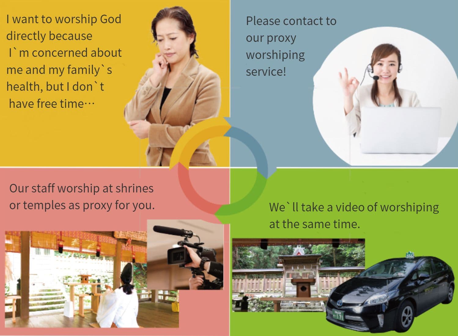 we can worship at shrines and temples as proxy for you when you can`t visit there due to disaster or individual disease and so on.