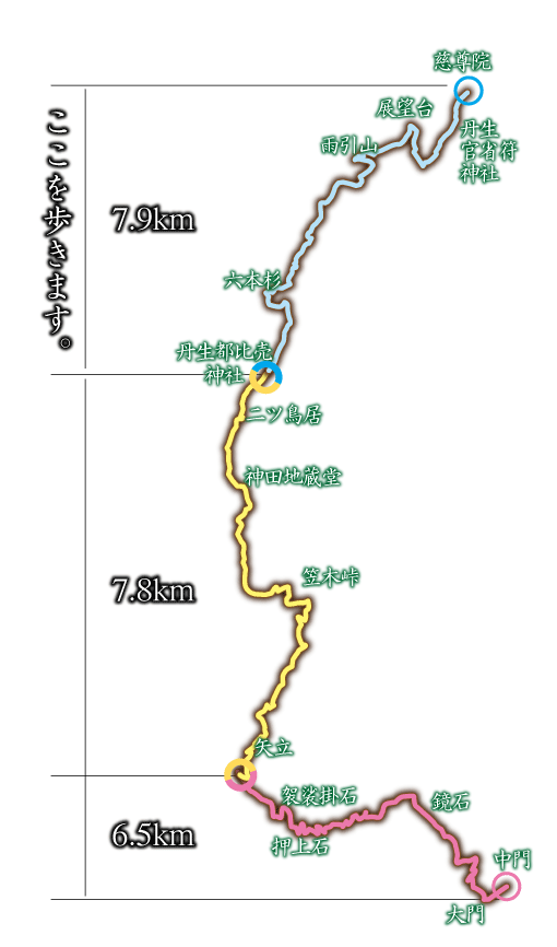 弘法大師空海が金剛峯寺の建設と運営の便を図るため、政所として山下に建立された「慈尊院」、金剛峯寺の荘園であった官省符荘の鎮守社として建立された「丹生官省符神社」からウォーキングはスタートします。