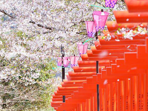 知る人ぞ知る桜と、丘の上まで続く鳥居の列が有名です。その風景はまるで京都の伏見稲荷大社ですが、丘の上からは紀の川の流れも眺望できて絶景です。