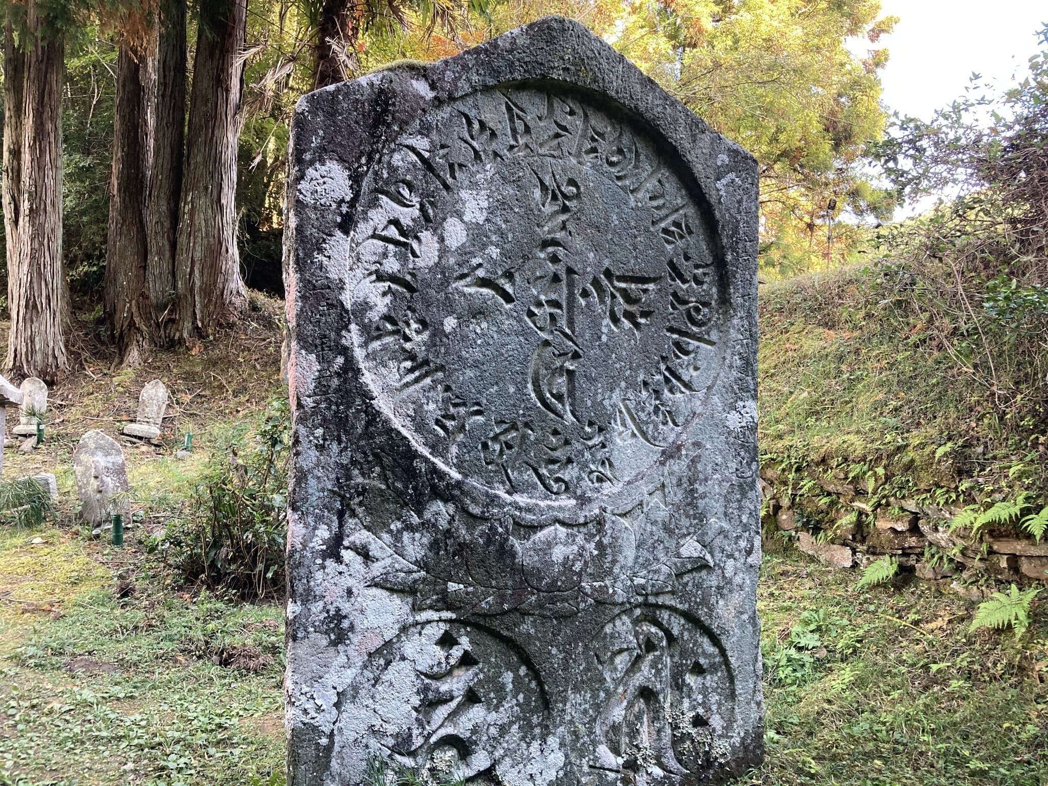 光明真言曼荼羅碑(こうみょうしんごんまんだらひ)といい1662年に建立、時計の針の方向に梵字で光明真言が刻まれています。